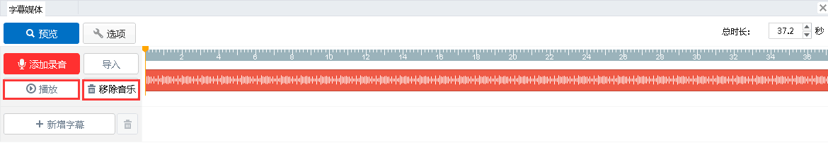 6)保存后的錄音會出現在字幕媒體編輯面板中。可以選擇“刪除音樂”或者“播放”錄音。